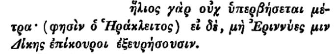 (The Sun will not overstep his measures; otherwise, the Erinyes, the ministers of Justice, will find him out)