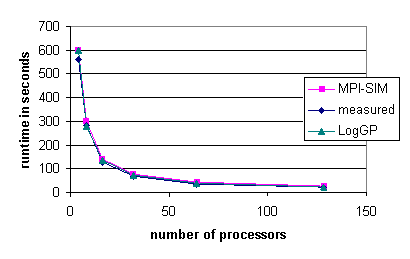 is accurately modeled by the LogGP and MPI-Sim models, which assume no