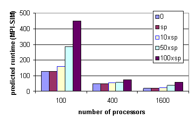 One key advantage to further of integrating MPI-Sim and the LogGP models is that performance of large-scale applications with modified implementations of the MPI communication primitives can be evaluated. For example, the MPI runtime software implementation on the SP/2 has not yet been optimized for communication among the processors in the same SMP node. For the experiments reported in section Section 5, the Sweep3D processes were mapped to different nodes in the SP/2, in order to utilize the efficient MPI communication between nodes. To obtain performance estimates of Sweep3D for next generation systems,future versions of this software, MMPI-Sim component models can be used to simulate the efficient communication that is expected to be available in future versions of the MPI runtime library. The measured communication costs from these simulations can then be used in the LogGP model, appropriately updated to reflect non-uniform intra-node/inter-node communication costs [36], to predict application scalability when Sweep3D uses intra-node as well as inter-node communication in the SP/2.
